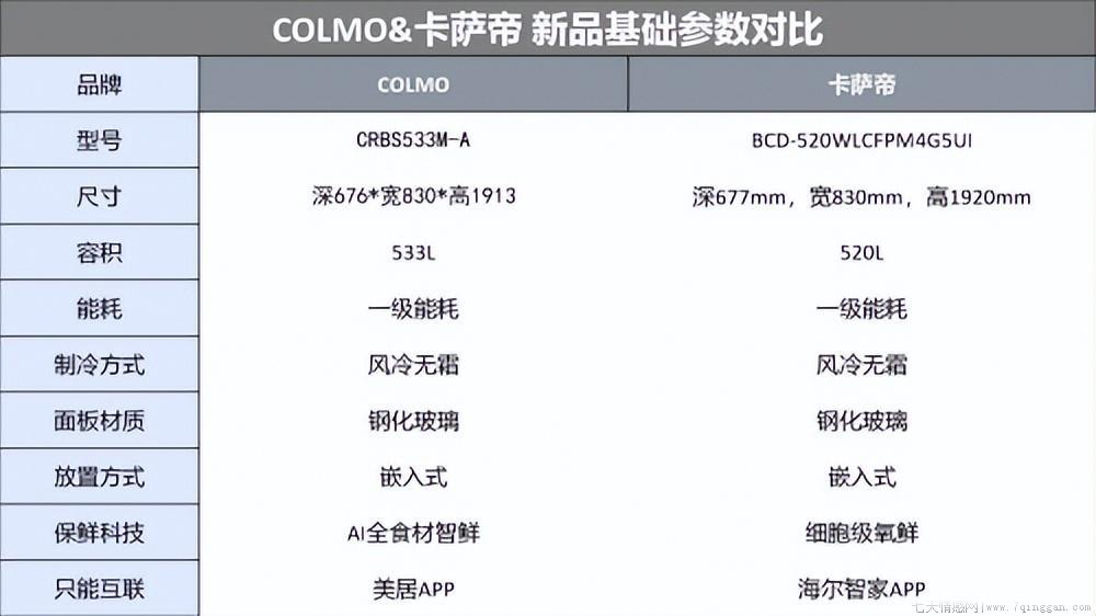 接下来具体谈谈COLMO冰箱和卡萨帝冰箱的区别。