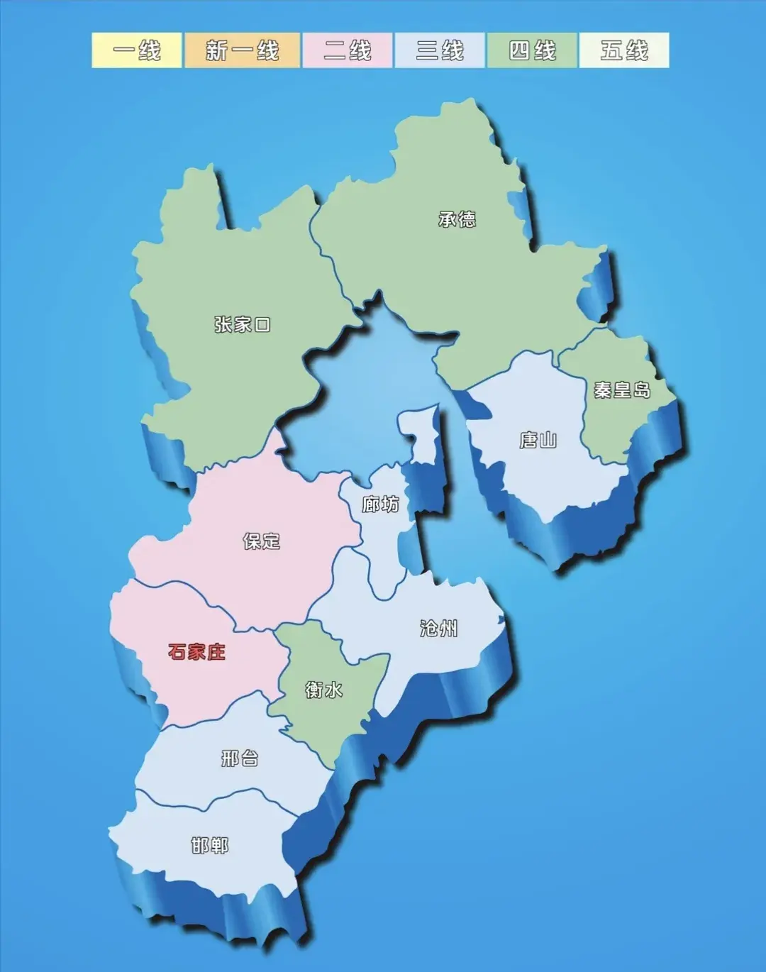 其中,保定市和石家庄市被划分为二线城市,唐山市、廊坊市、沧州市、邢台市、邯郸市被划分为三线城市,秦皇岛市、张家口市、承德市、衡水市被划分为四线城市。