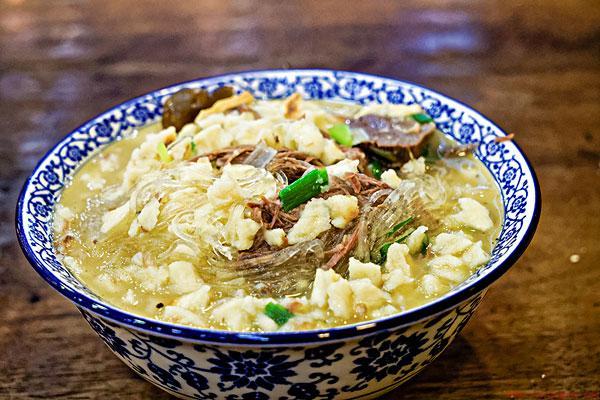 豆腐脑是延安的一道传统美食,选用优质黄豆为原料,经过磨浆、煮浆、点卤等工序,味道鲜美,营养丰富。豆腐脑可以搭配各种调料,如葱花、辣椒油、醋等,口味丰富多样。