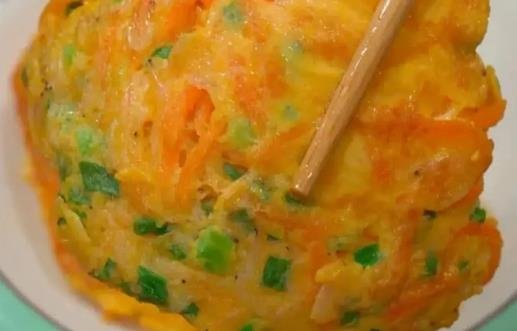 4、当看到胡萝卜变软了就倒入鸡蛋,尽量到的均匀……【查看详情】