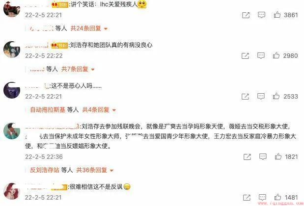 不禁让网友对其产生质疑,刘浩存去参加残疾人晚会高谈阔论,这是故意玩高级黑、伤口撒盐么,想过被她父母害瘫痪女孩的感受么?堪比某爽去给孕妇当形象大使、某娅去当交税形象大使。