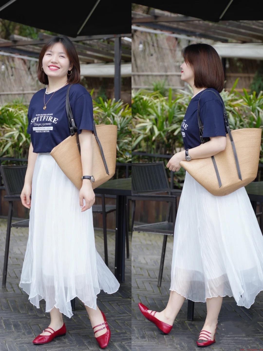 这位博主的体重在122斤左右,夏天里她就非常喜欢轻盈浪漫的半身裙。毕竟高腰的半身裙,搭配上垂坠飘逸的裙摆,不仅更加浪漫减龄,还特别的轻盈显瘦呢。