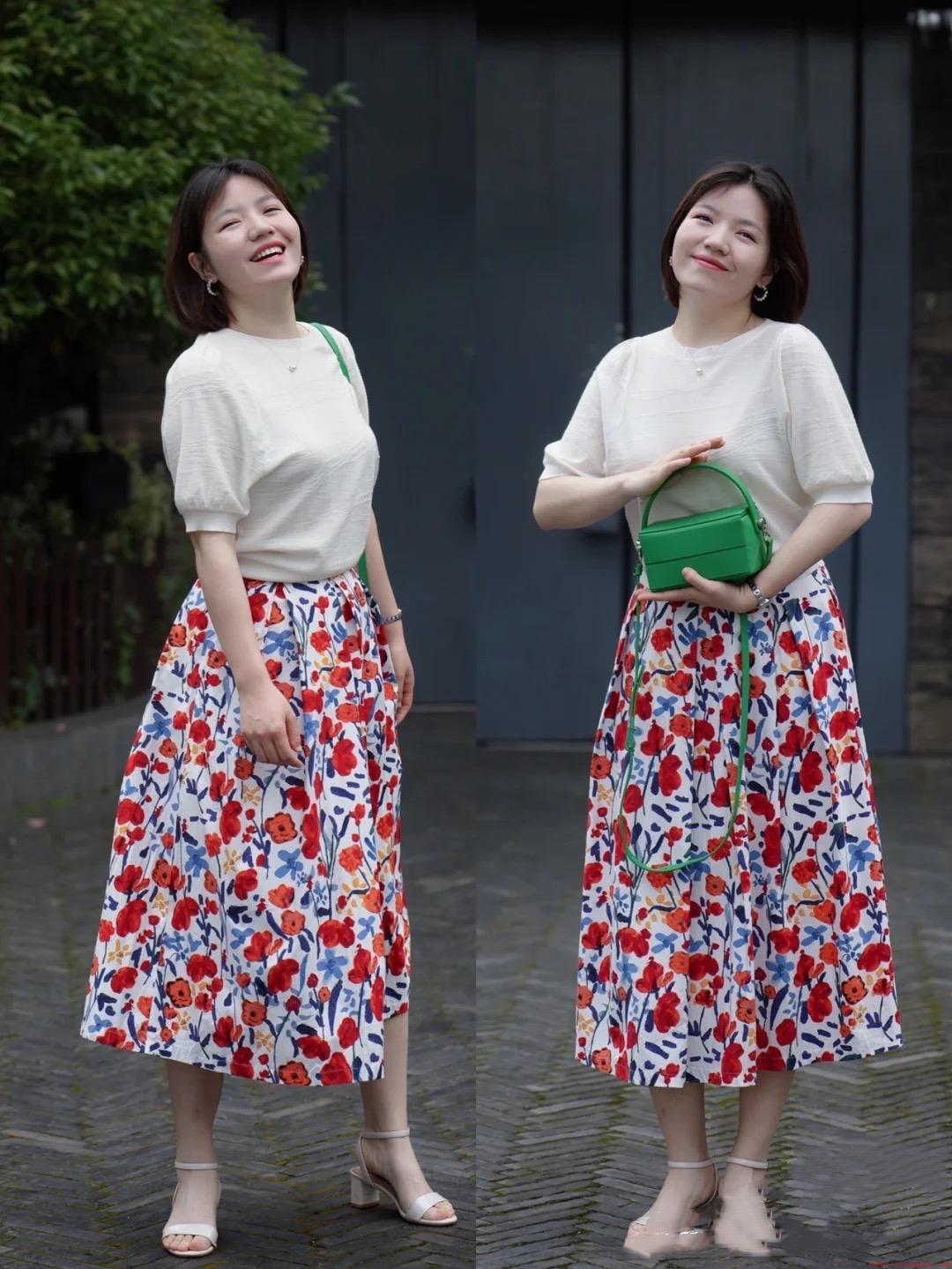 夏天里的印花半身裙,是轻柔的也是浪漫的。小小的开叉裙摆,透着几分轻盈静谧感,给人一种特别甜美时尚的减龄感。