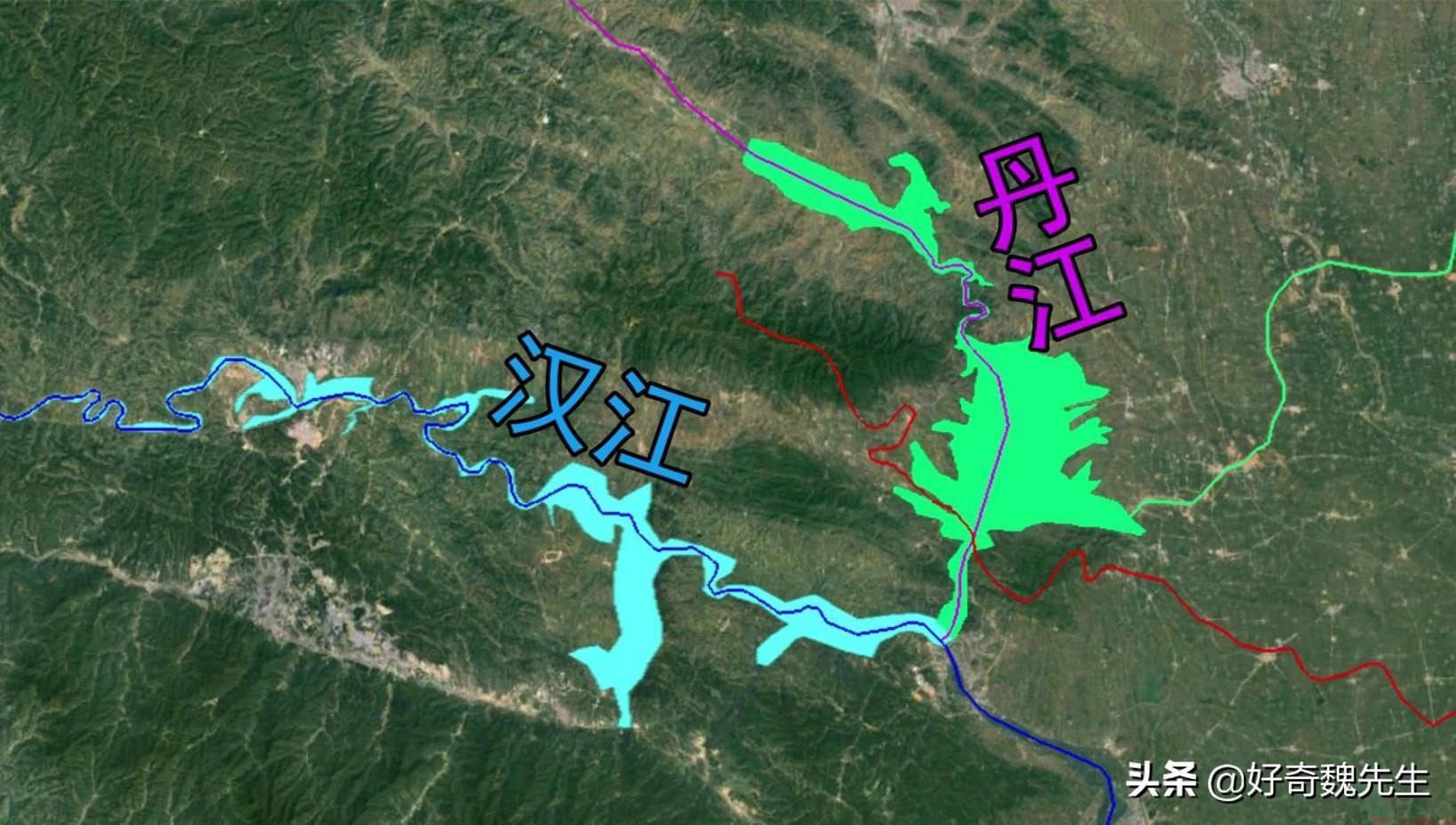 丹江库区因为这一片地势较低,形成了连续的、形状规则的大水库,比较引人注目;而汉江库区的水面宽窄不定、零零碎碎,容易被人忽略。